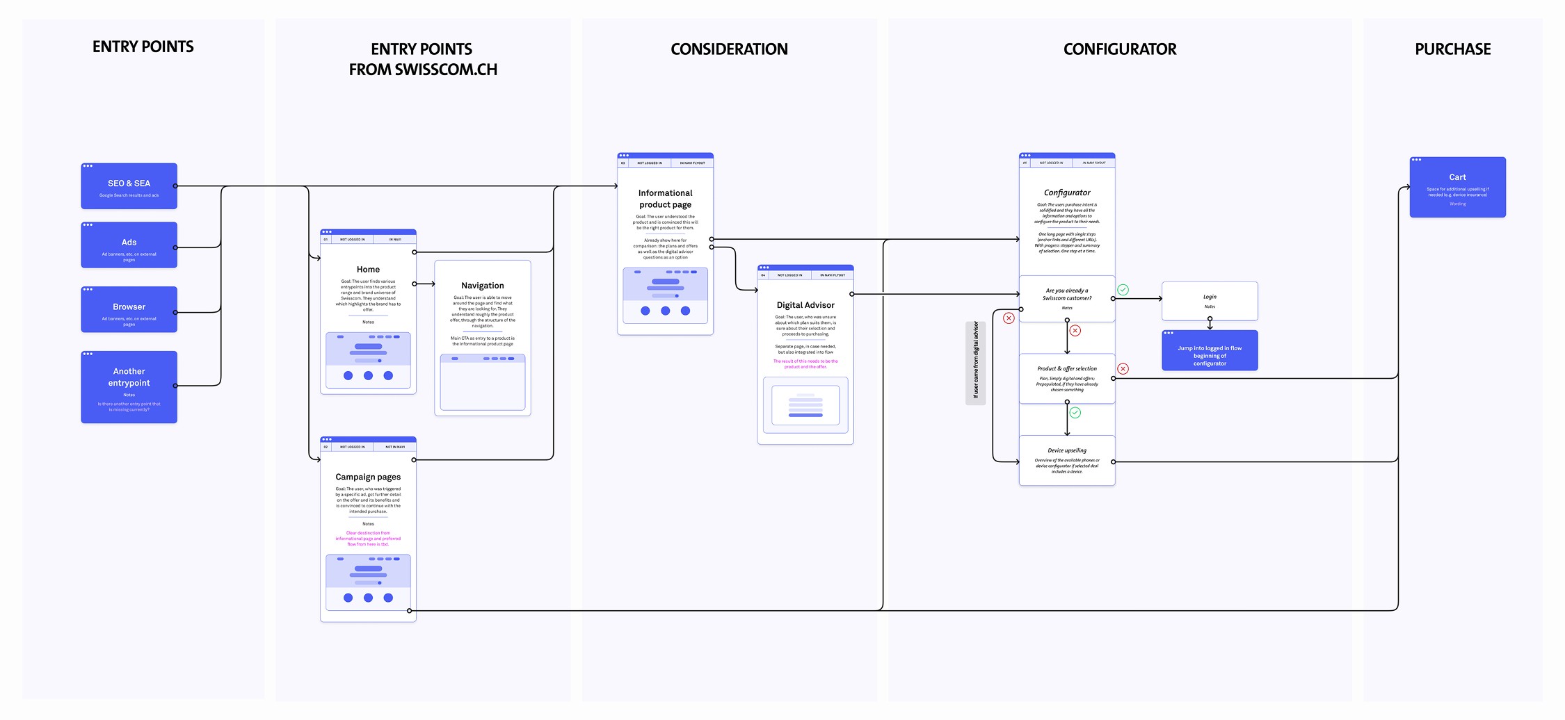 Gemeinsam mit dem Designteam übertrug ich die definierte Experience Vision auf verschiedene Produkt- und Serviceseiten. Ziel war es, Nutzer entlang der gesamten Journey – von der Information über die Konfiguration bis zum Bestellabschluss – klarer zu führen und Entscheidungsprozesse zu vereinfachen.